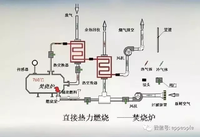 熱破壞法是指直接和輔助燃燒有機氣體,也就是VOC,或利用合適的催化劑加快VOC的化學(xué)反應(yīng),最終達到降低有機物濃度,使其不再具有危害性的一種處理方法。